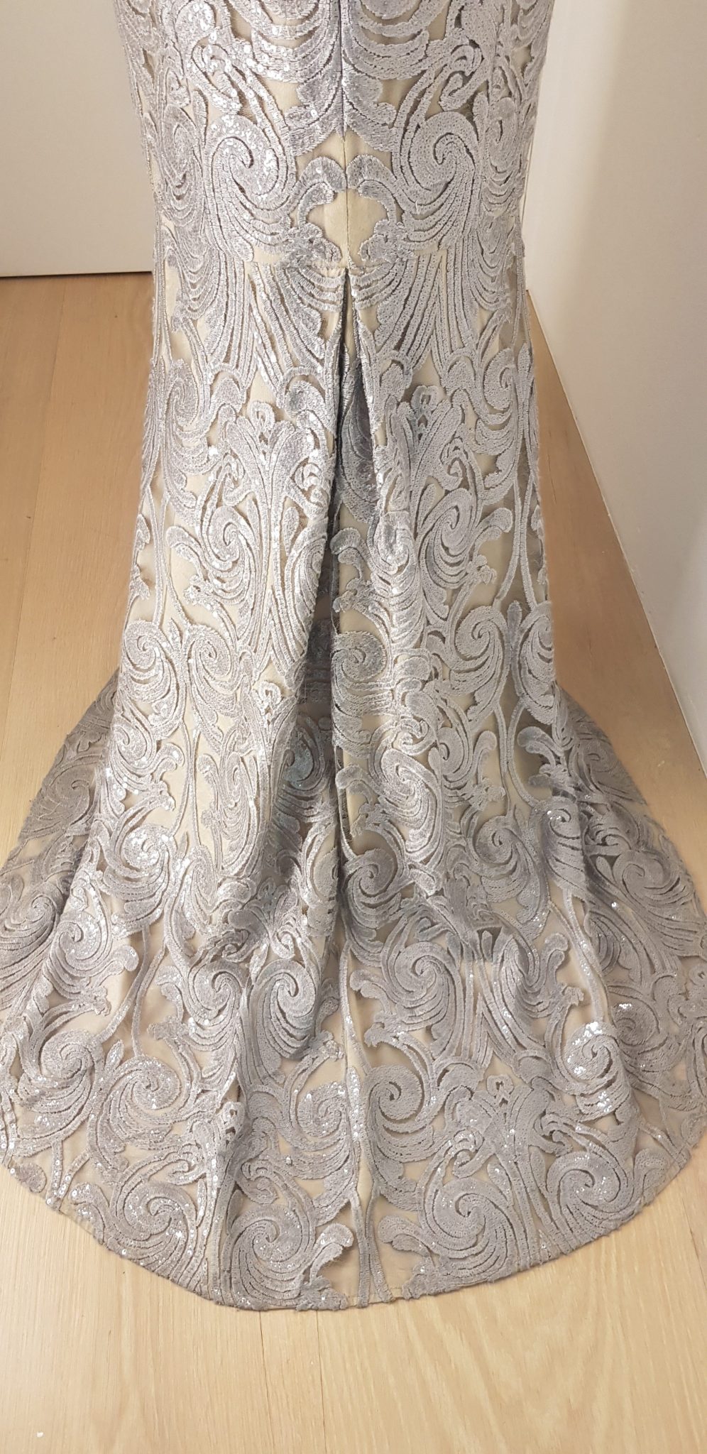 - Länge: bodenlang, Schleppe