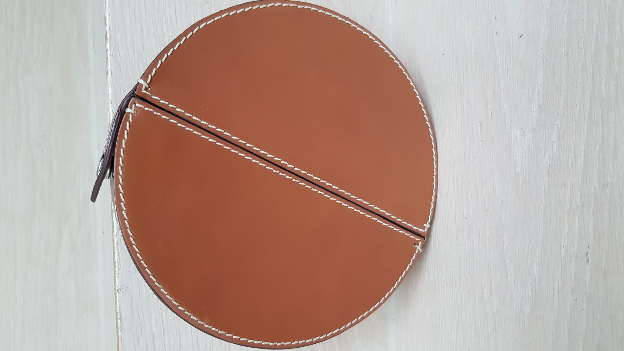 - Beschreibung: Clutch, rund, braun