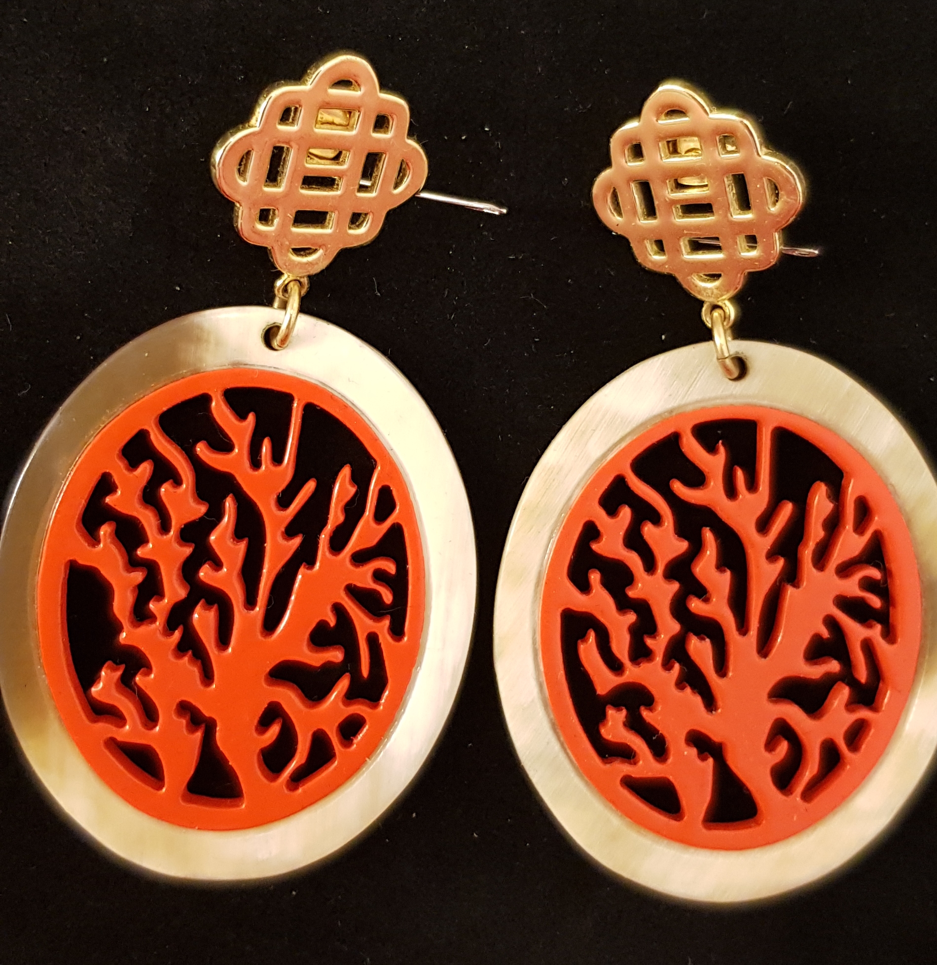 - Beschreibung: Ovale große Horn-Ohrringe mit Korallenoptik, für gestochene Ohren
